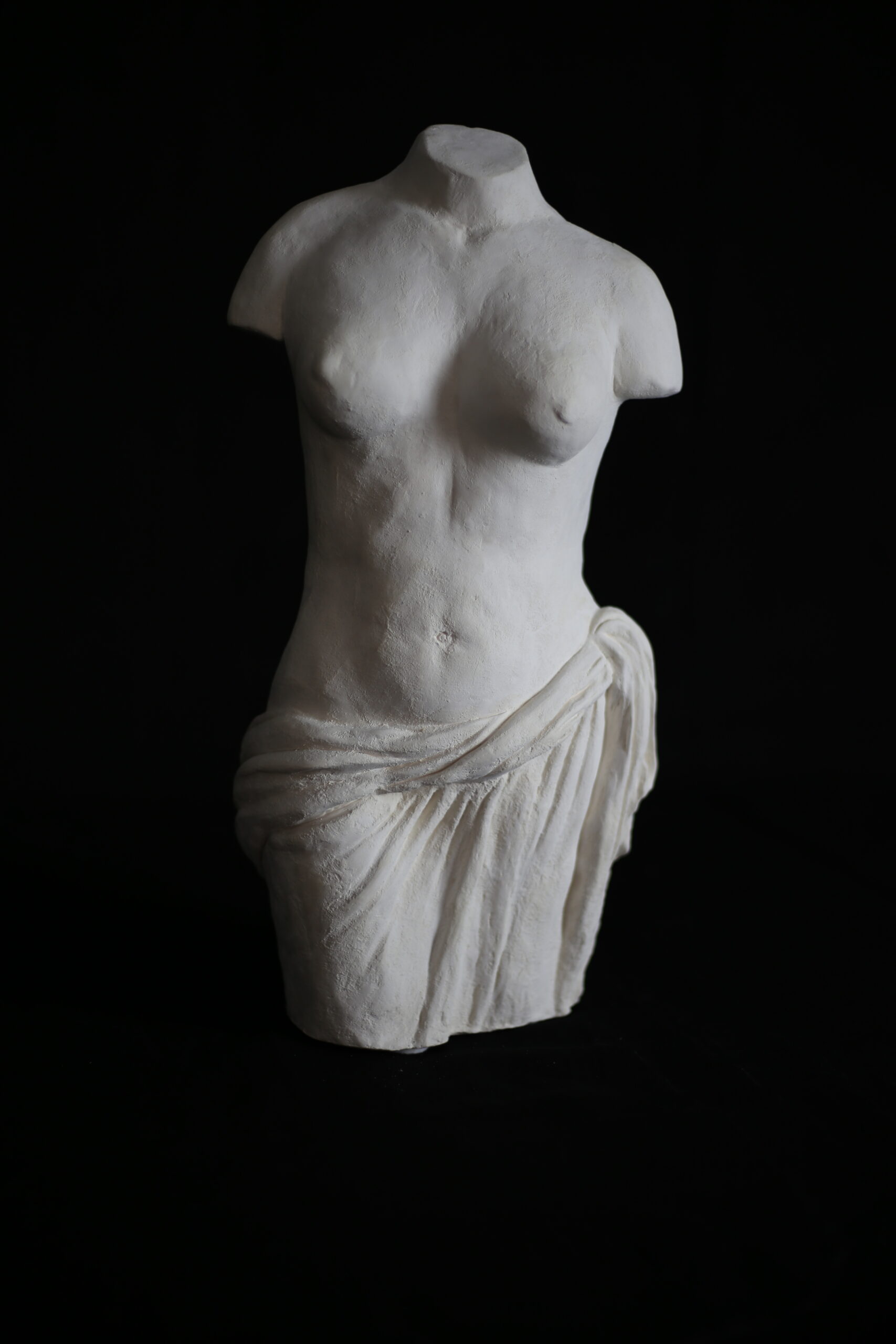 Ce corps ne provient pas des vestiges Grecs ou Romains que l’on peut voir au Louvres. Il a été réalisé à la demande d’une amie. Une belle opportunité pour arpenter les allées et les époques de ce Musée, y trouver l’inspiration et étudier les formes des statues. Des dizaines de photos ont été nécessaires pour réussir à personnaliser cette pièce. Un support à la fois riche pour le regard, et rempli d'histoire. Matières : argile cuite et patine Dimensions : 38 x 13 x 19 cm