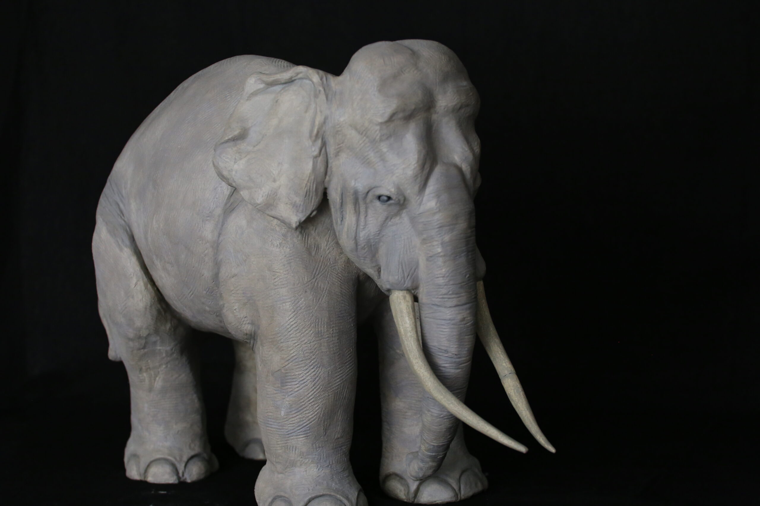 Avec son front concave, ses oreilles plus petites, et sa taille, cet éléphant est originaire d'Asie. Il se nomme Siam et a réellement existé. C'est tel une star qu'il a évolué au sein d'un cirque puis au zoo de Vincennes. Il a été notre coup de cœur à mes enfants et moi dès qu’on l’a vu à la Grande Galerie de l'évolution à Paris. J'ai aimé lui redonner une 2ème vie et un peu de notoriété au travers de cette œuvre. Matière : argile cuite et patine Dimensions : 49 x 68 x 25 cm